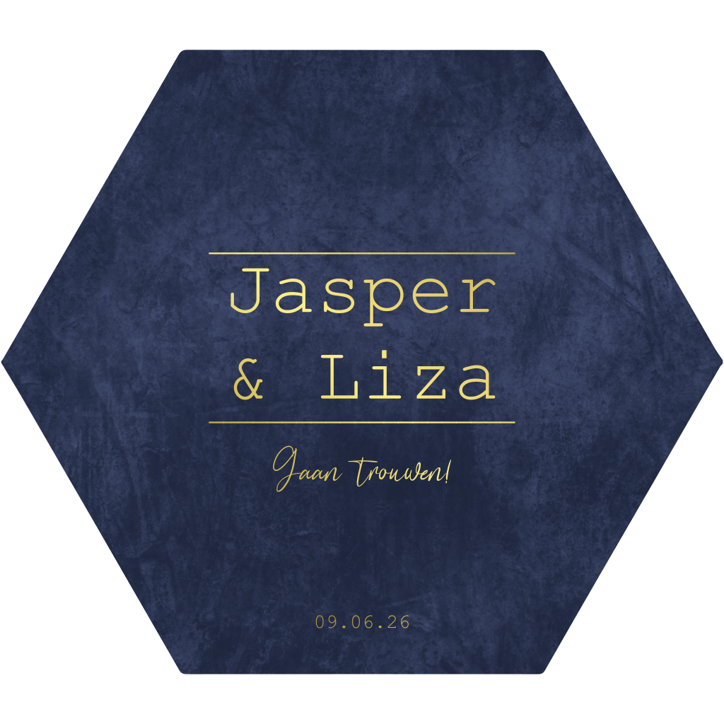 Deze trouwkaart met donkerblauwe achtergrond in de vorm van een hexagon honingraat heeft door de print een velours velvet look. Als je dit kaartje op Linnen papier druk krijgt het een echte velvet uitstraling.