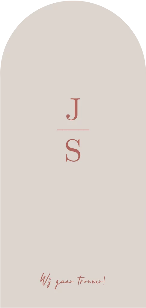 Trouwkaart langwerpig met ronde bovenkant initialen naam
