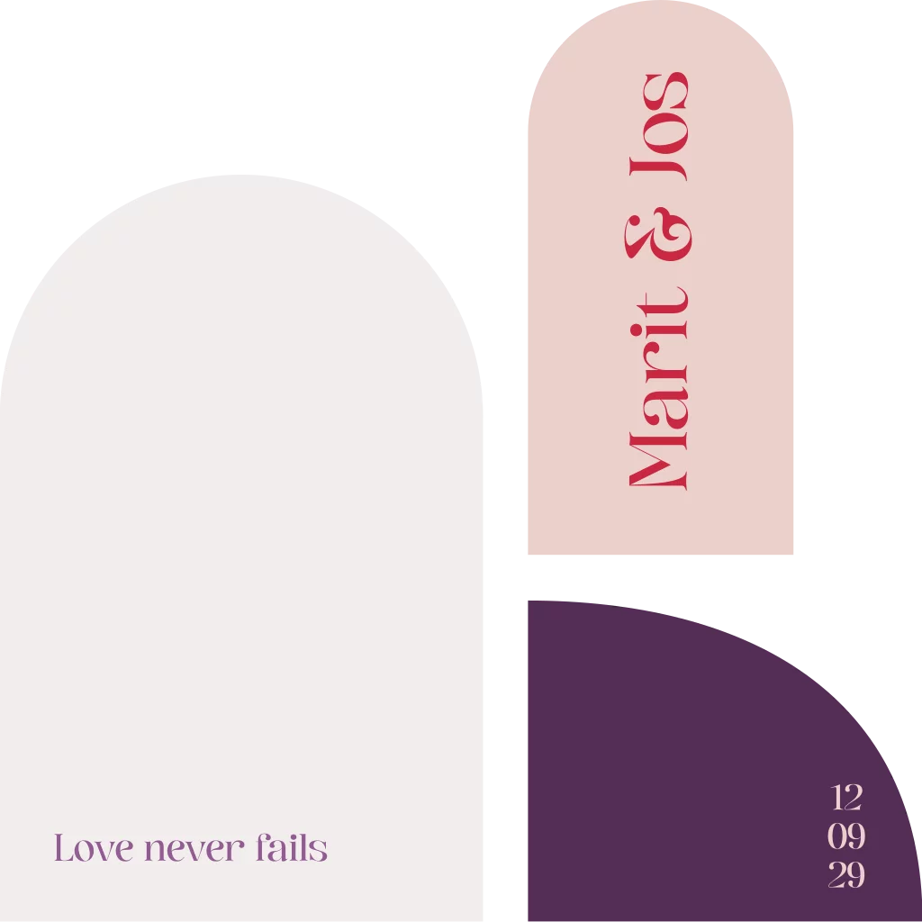 Trouwkaart stapelset 3 kaartjes fel roze paars en beige kleuren