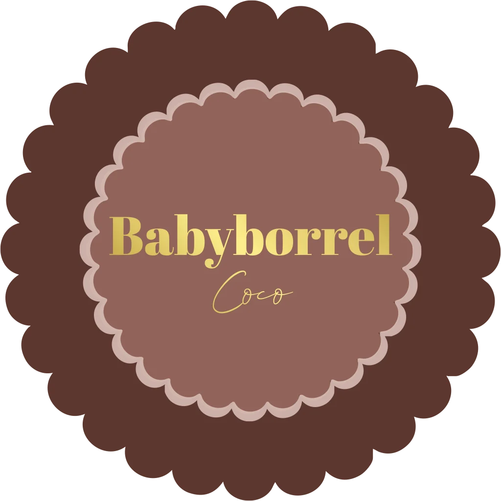 Babyborrel kaartje vorm van een bloem rood bruin en roze met goudfolie
