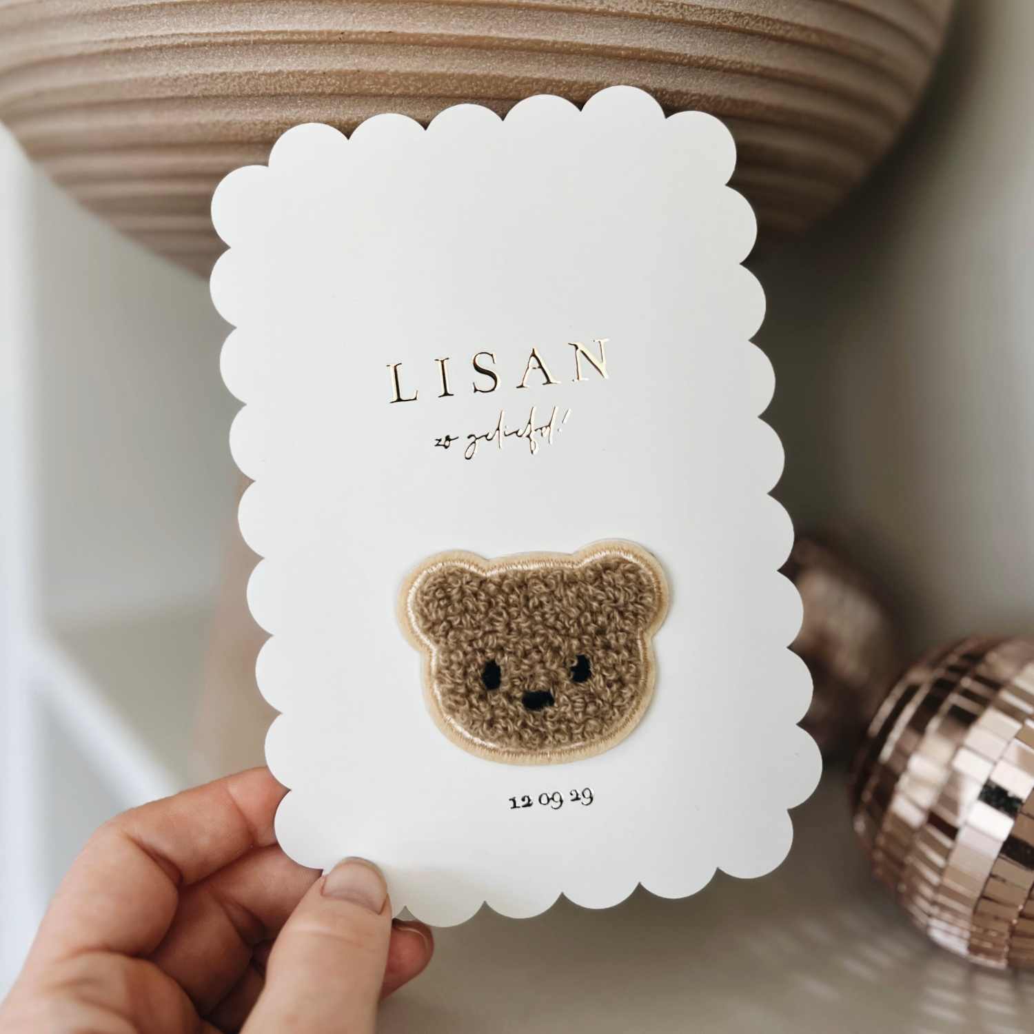 Geboortekaartje met eventueel stoffen geborduurd beertje