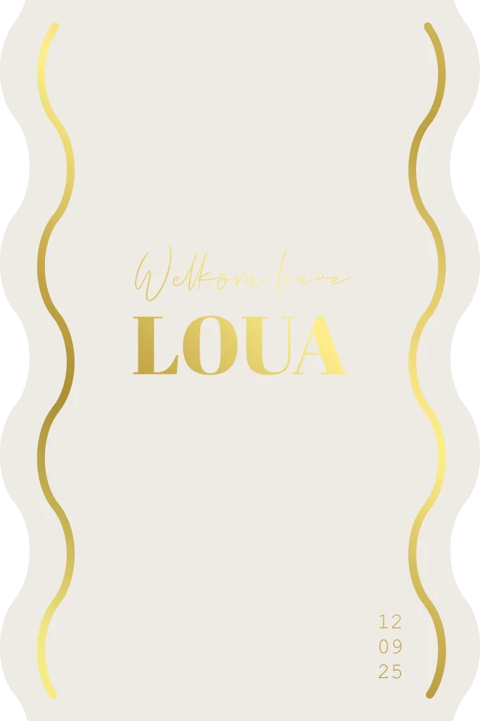 Dit geboortekaartje kan voor zowel een meisje als een jongen door de beige kleur in combi met goudfolie.
