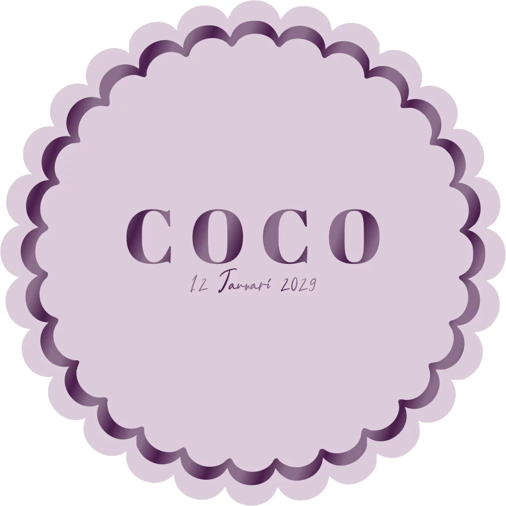 Een lief geboortekaartje voor een meisje in de vorm van een bloem met een rand in lila aubergine paarse vorm. De achtergrond kleuren en de tekst kun je allemaal aanpassen naar wens en smaak.