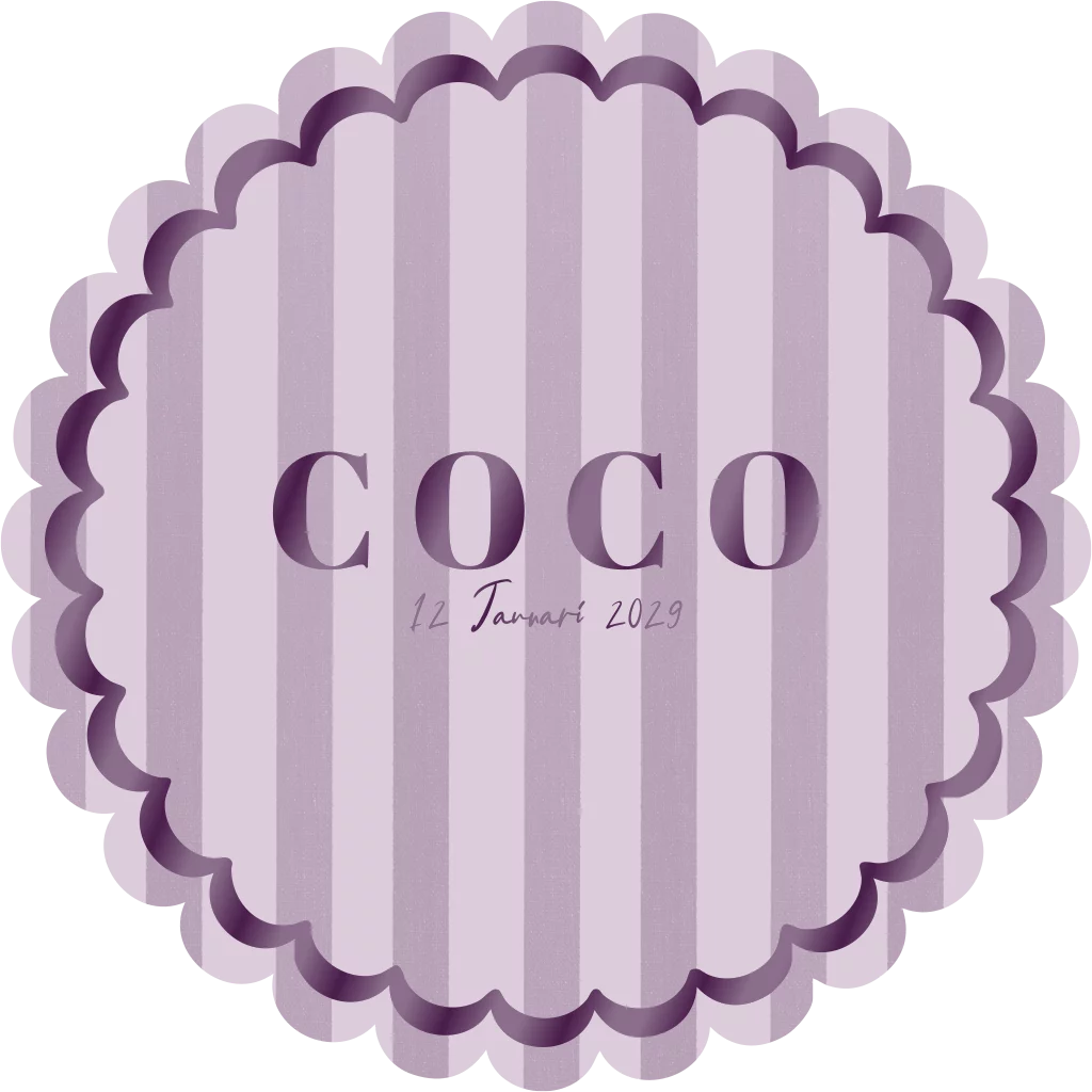 Een lief geboortekaartje voor een meisje in de vorm van een bloem met een rand in lila aubergine paarse vorm. De gestreepte achtergrond kleuren en de tekst kun je allemaal aanpassen naar wens en smaak.