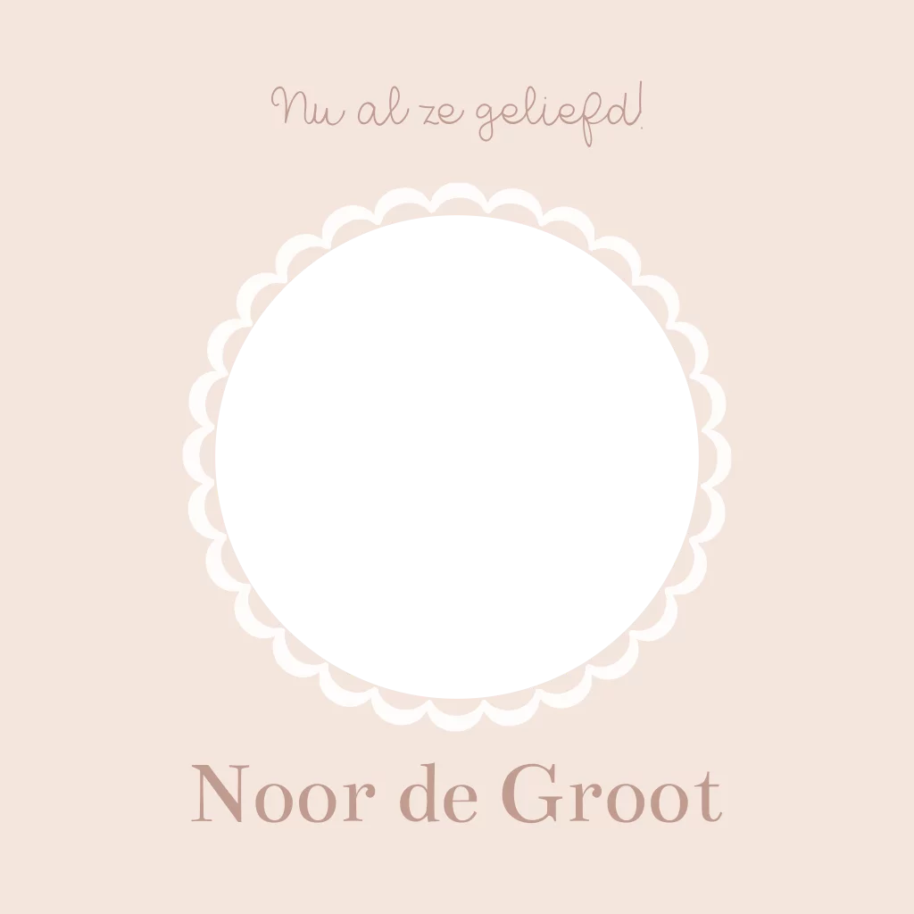 Dit lieve geboortekaartje voor een meisje met rond gat in de voorkant waardoor je doorkijkt naar de newborn foto op de voorkant kun je aanpassen naar wens. Straks met een lieve foto van jullie eigen dochtertje.