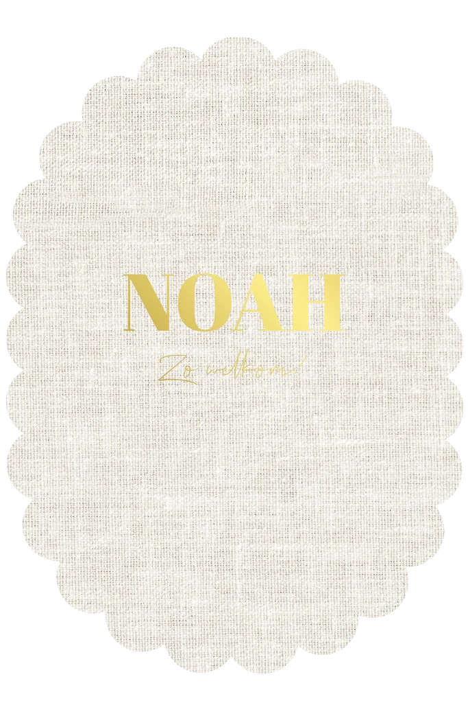 Dit lieve geboortekaartje voor een jongen of meisje met Linnen look achtergrond en bijzondere unieke ovalen vorm met golfjes rand kun je zelf aanpassen naar wens.