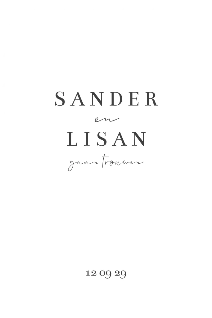 En eventueel een mooi strikje in de kleur van jullie bruiloft om de kaart doen.