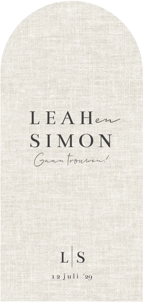 Klassieke trouwkaart met boog linnen look beige minimalistisch