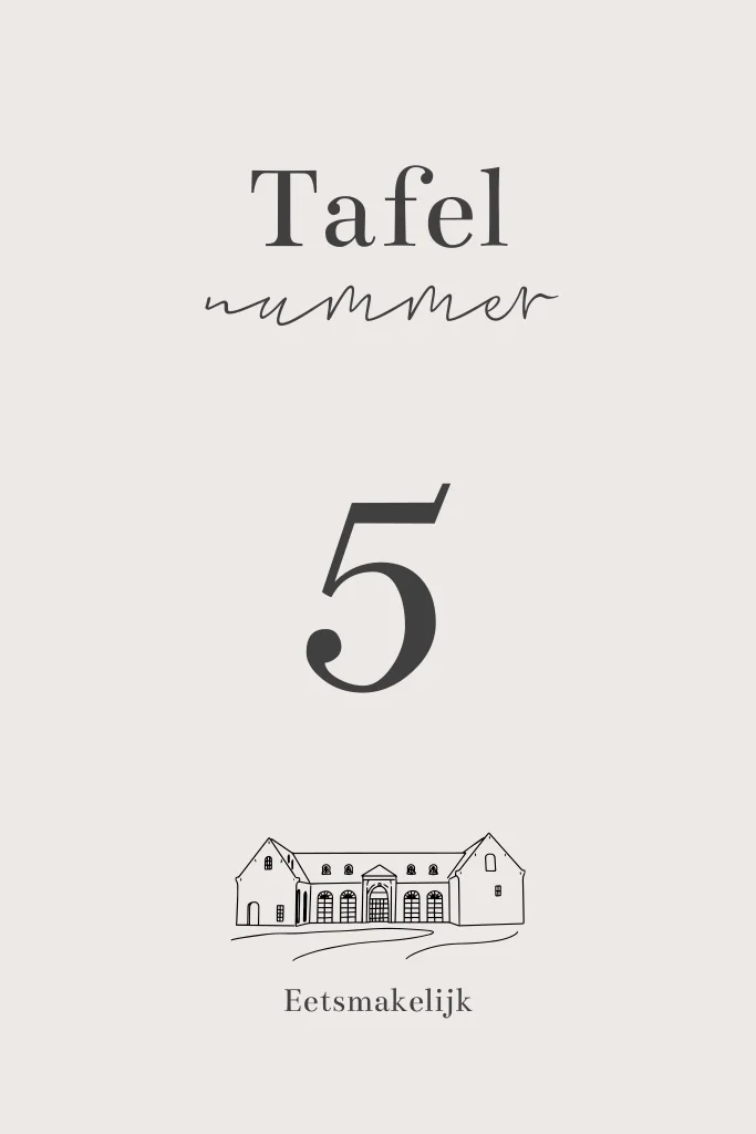 Tafelnummer kaartje met minimalistische tekening trouwlocatie