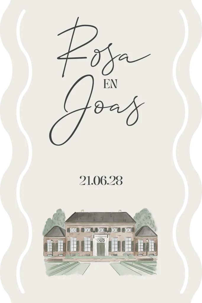 Trouwkaart organisch beige minimalistisch tekening Dudok in het park