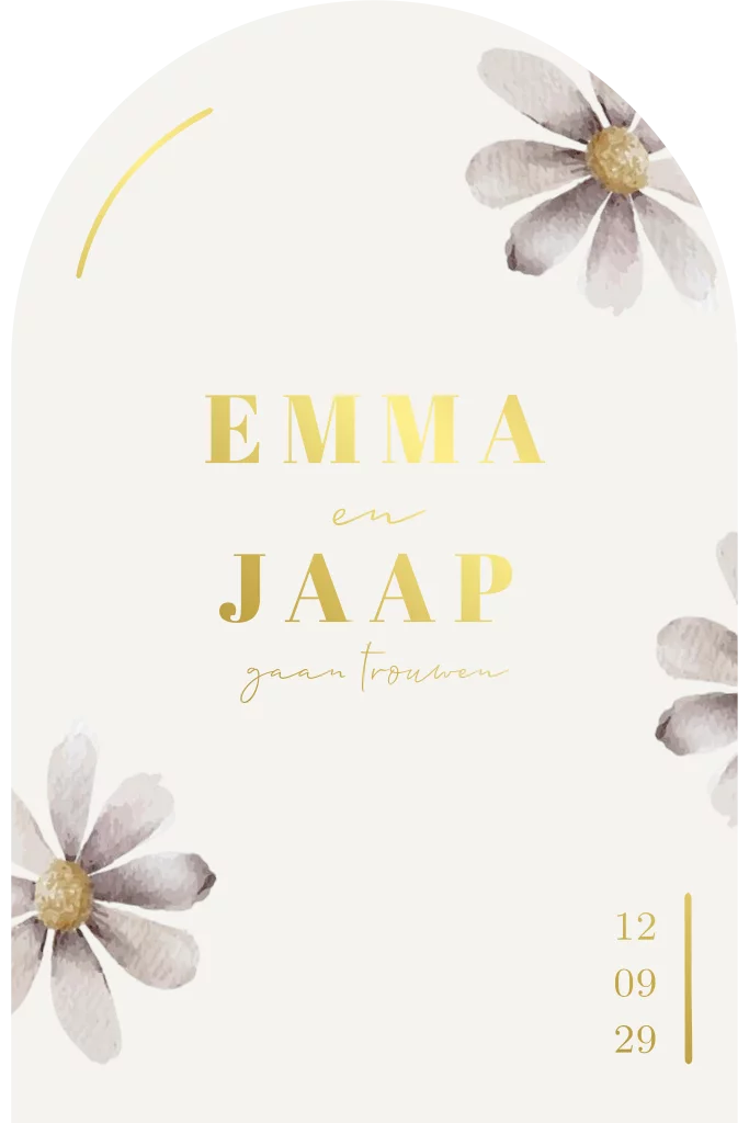 Deze trouwkaart met paarse roze watercolour bloemen kun je aanpassen naar wens. Ook de tijdslijn op de achterkant. Jaap & Emma