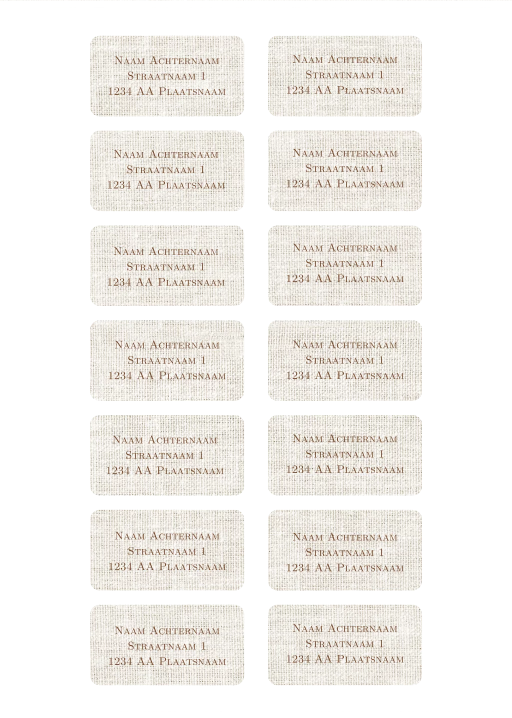 Met deze adresstickers met linnen achtergrond Maak je de enveloppe van jullie trouwkaart of geboortekaartje helemaal mooi af. Je kunt deze stickers helemaal aanpassen naar wens.