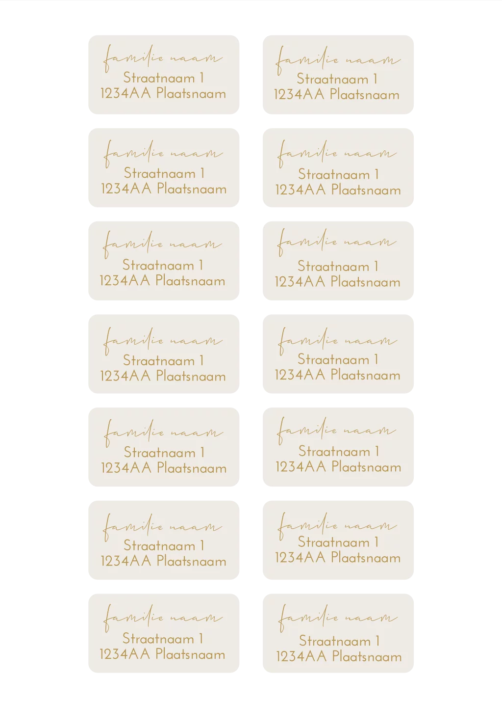 adressticker sierlijke naam in goudkleur en beige