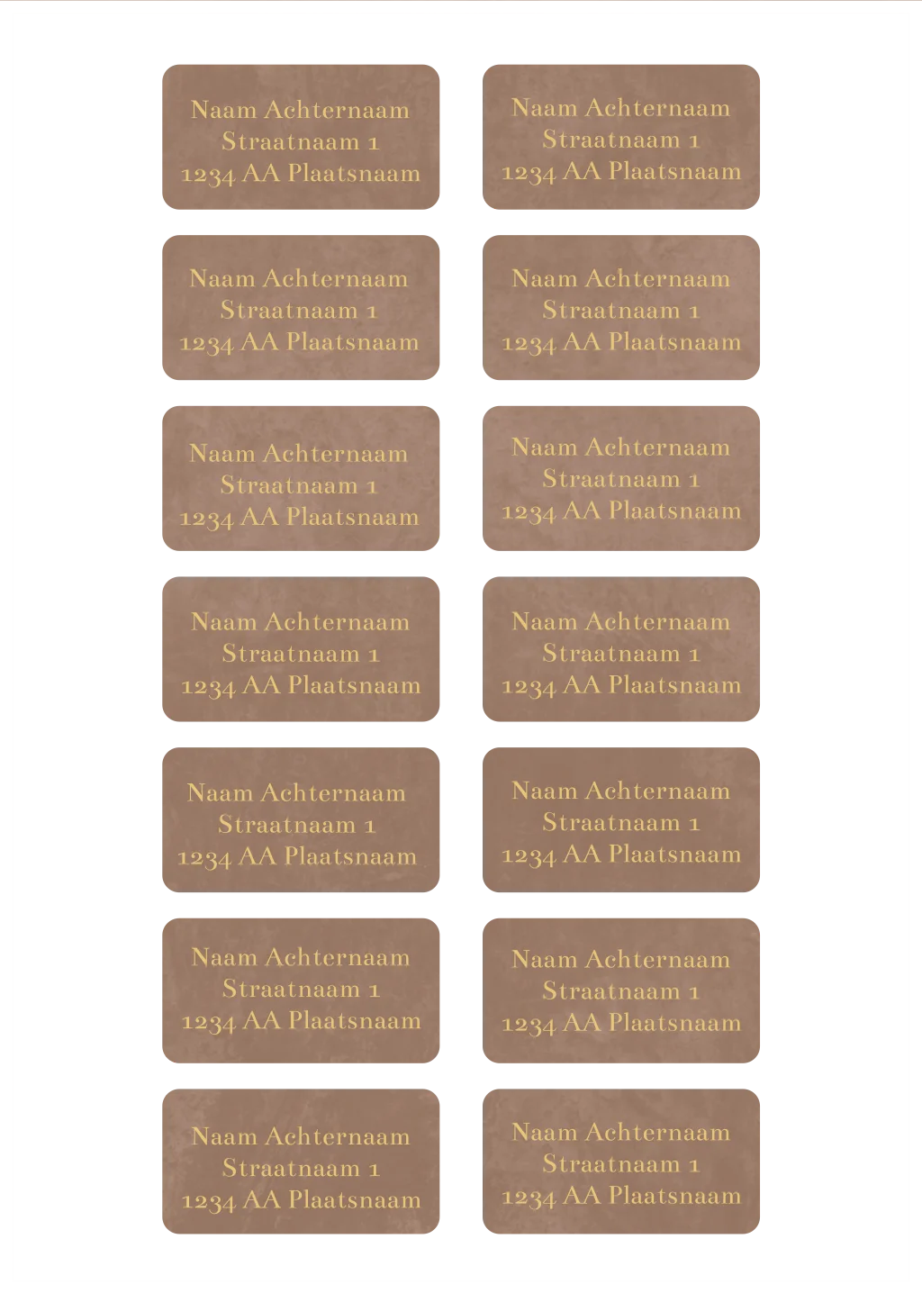 Met deze adresstickers met velourse achtergrond Maak je de enveloppe van jullie trouwkaart of geboortekaartje helemaal mooi af. Je kunt deze stickers helemaal aanpassen naar wens.