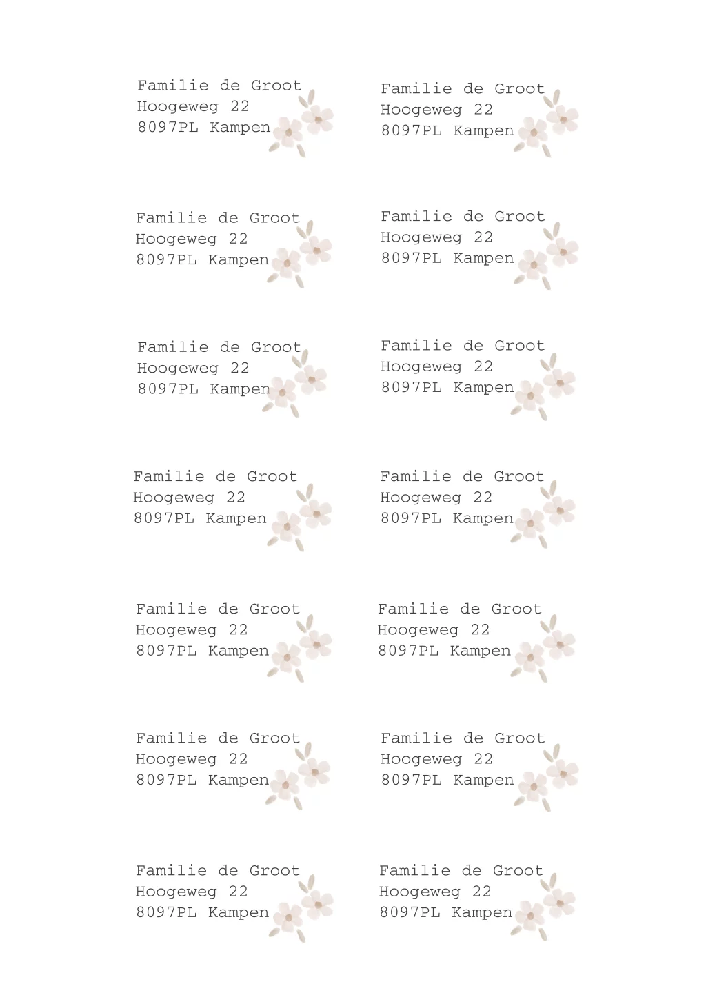 Met deze adresstickers passend bij het geboortekaartje Rosa maak je de enveloppe helemaal mooi af. Je kunt ook nog een bijpassende sluitsticker bestellen. Kleuren en lettertype zijn aan te passen in de editor.
