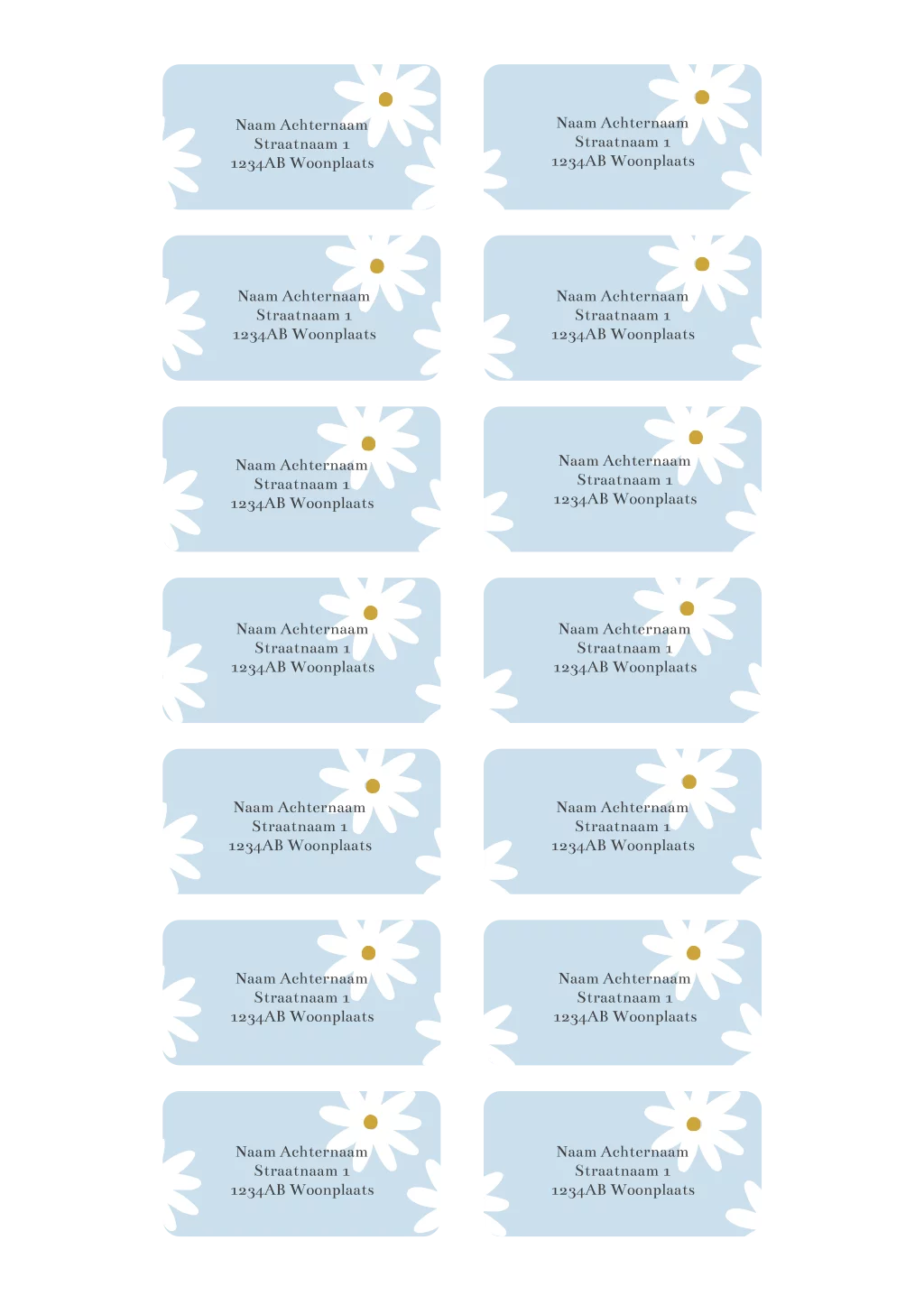 Adresstickers met schattige madeliefjes bloemen wit oker geel en blauw