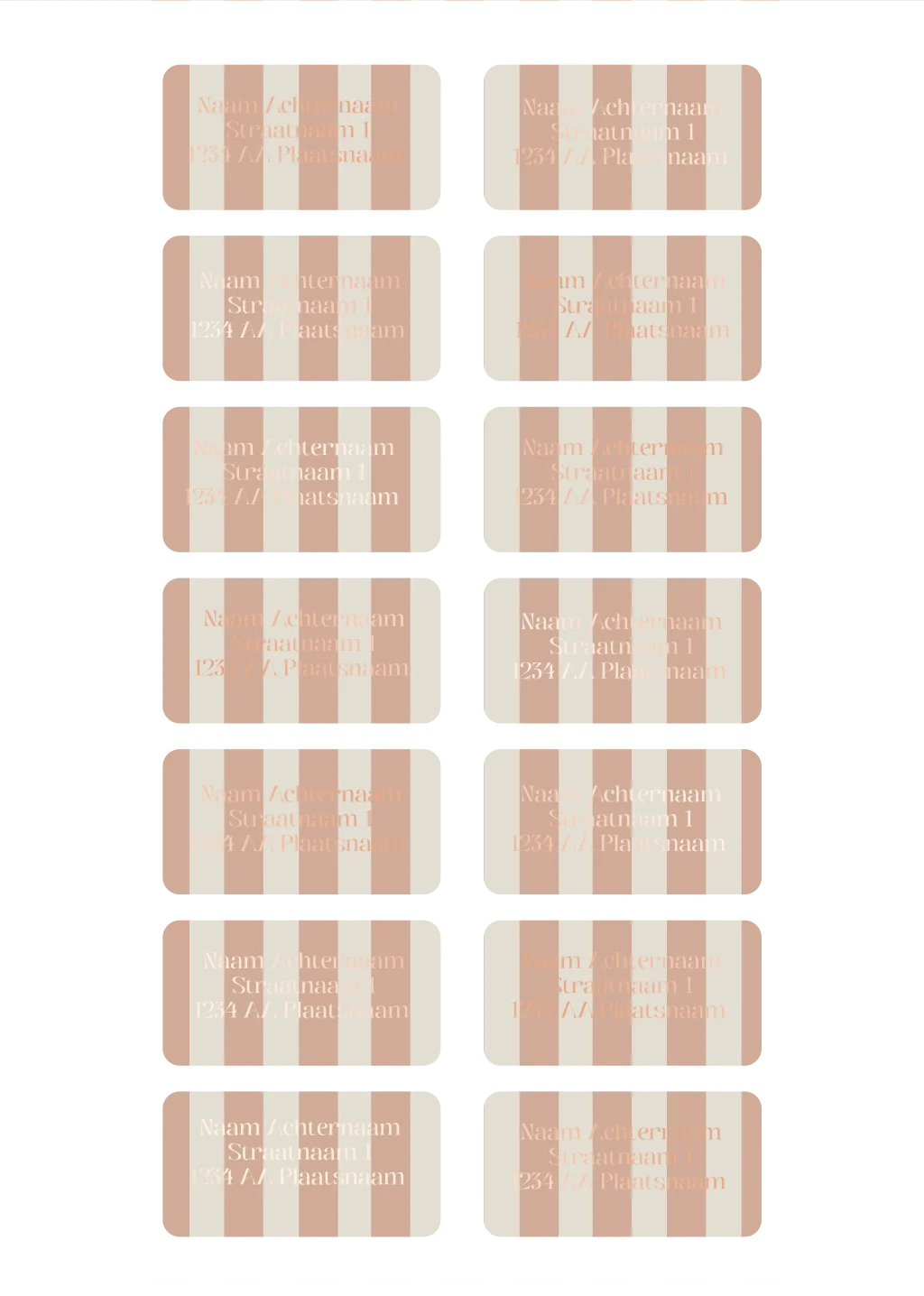 Maak het geboortekaartje compleet met deze roze met beige gestreepte adressticker.