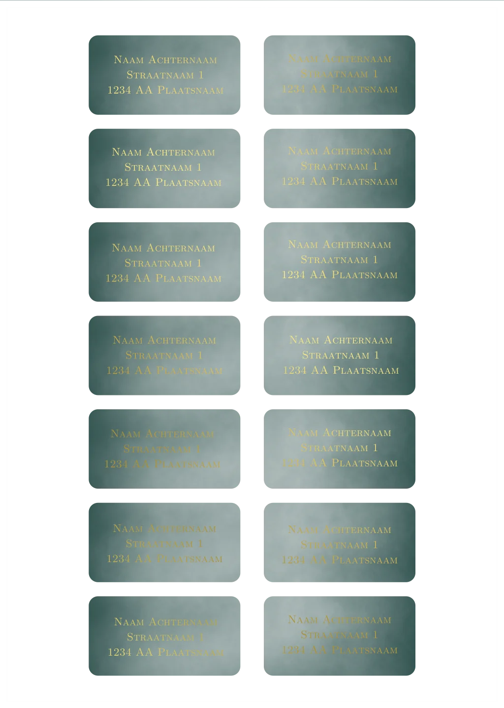 Donkergroene adressticker met goudfolie