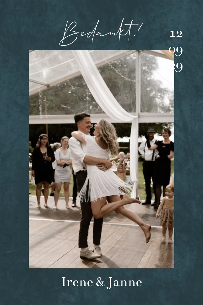 Bedankkaart voor bruiloftsgasten bedanken met trouwfotos