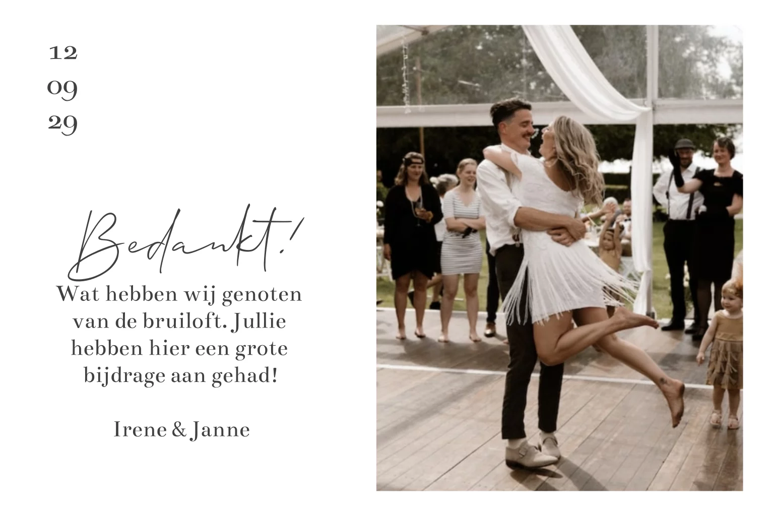 bedankkaartje om de daggasten te versturen met foto van de bruiloft