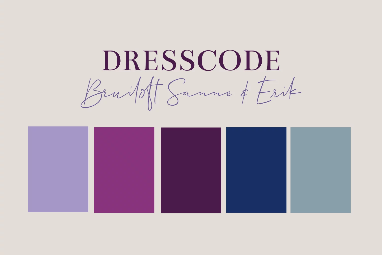 Dresscode kaartje in paars blauw voor jullie daggasten op de bruiloft