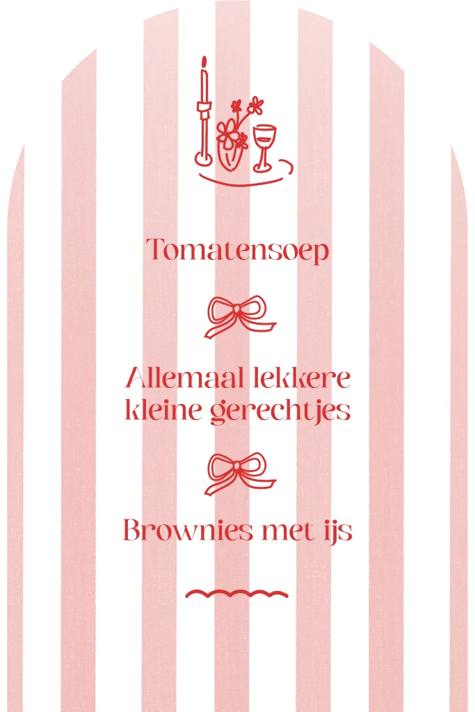 Menukaart 21 diner rood roze streepjes en tafel doodles