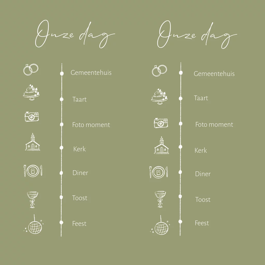 Tijdslijn trouwkaart dagprogramma van jullie trouwdag