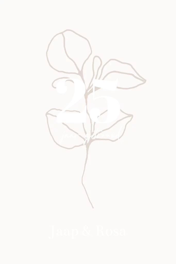 25 jarig jubileum huwelijks kaart beige met cijfers in folie en takje