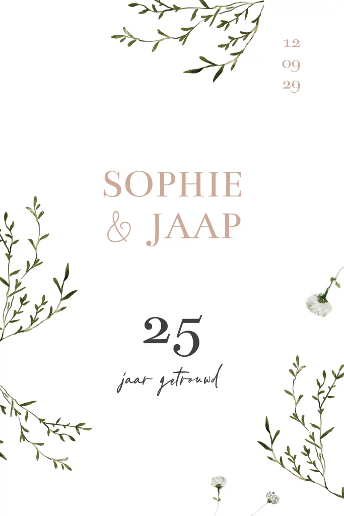 Je kunt deze kaart natuurlijk ook omzetten naar een 30, 40, 50, 60 of 12,5 jarig huwelijkskaart.