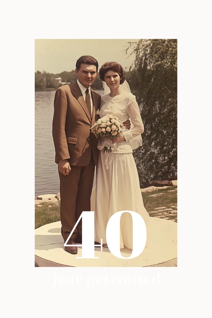 40 jarig jubileum huwelijks kaart met oude trouwfoto voorop