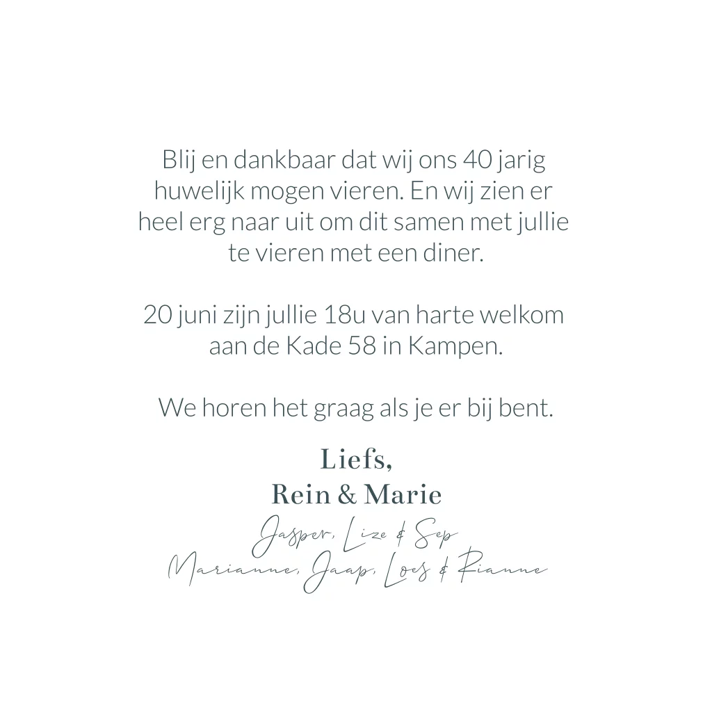 Wil je meer in dezelfde huisstijl op jullie jubileum? Denk aan welkomstborden, menukaarten etc. Dat kan, we helpen graag.