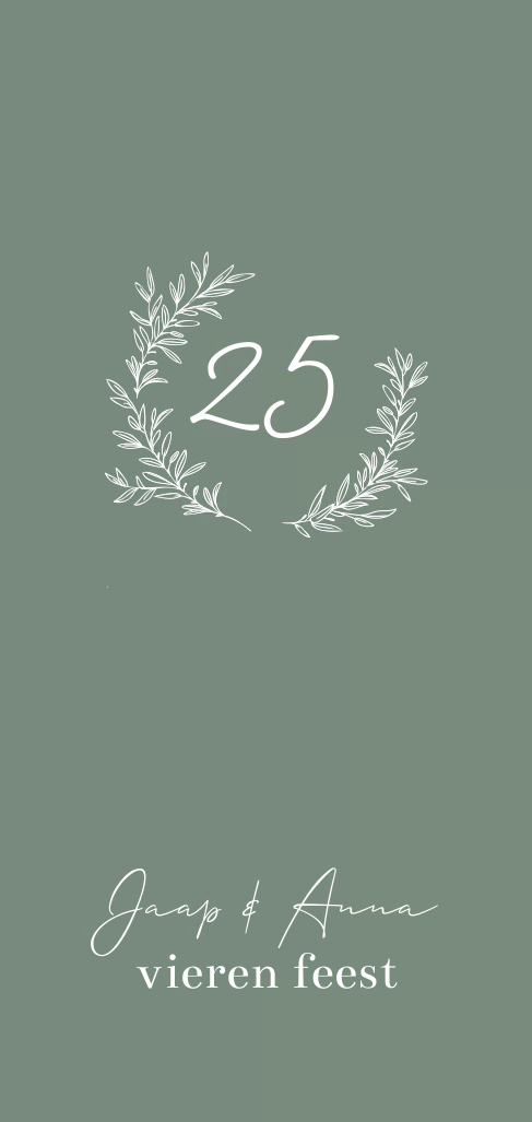 Jubileum kaart 25 jarig huwelijk met krans in goudfolie