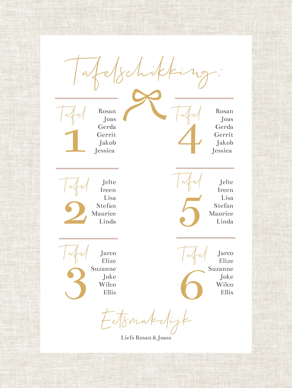 Tafelschikkingsbord linnenlook goudletter en strikje