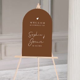Welkombord bruiloft trouwen boogvorm bruin oranje rood