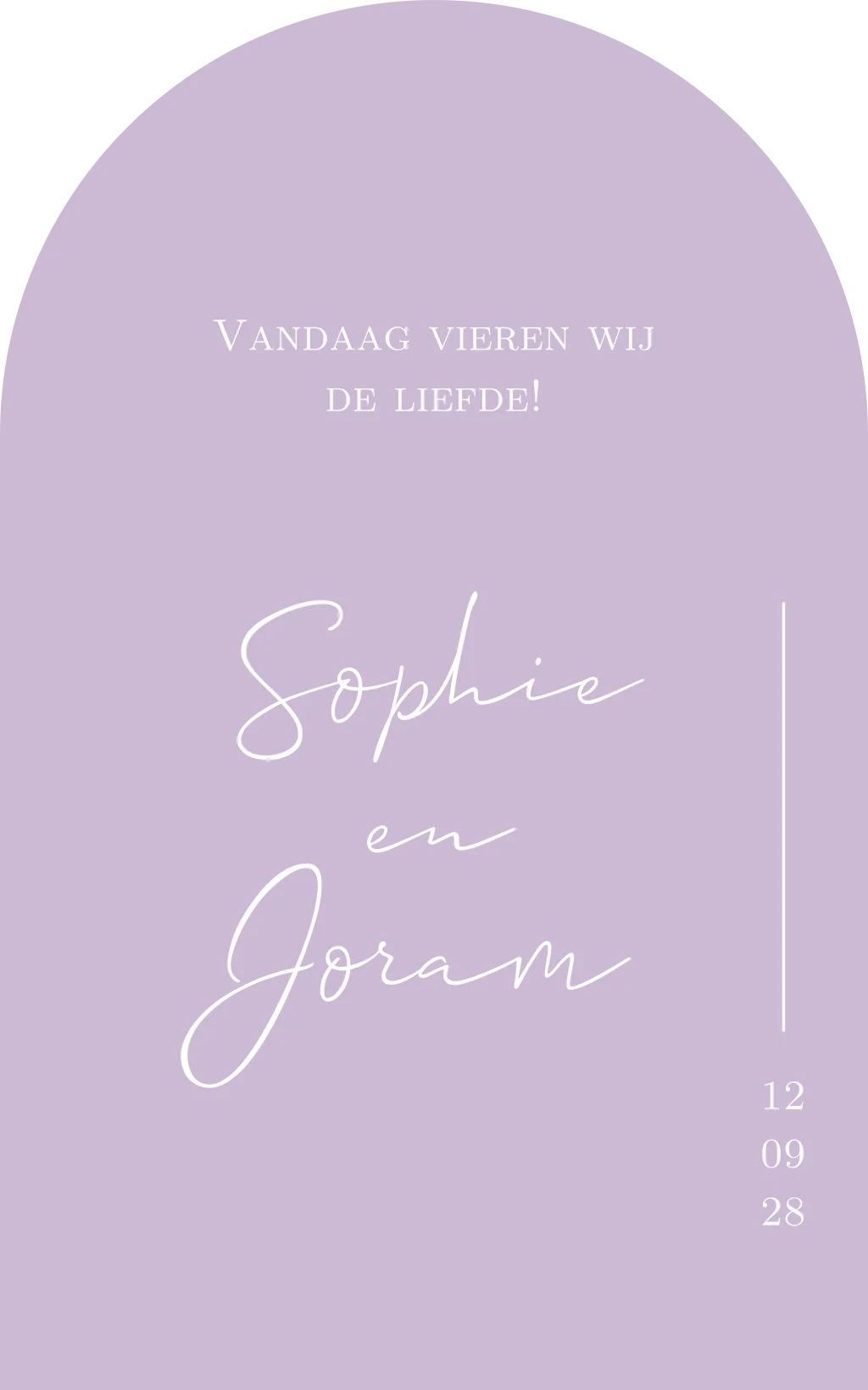 Met een welkomsbord op jullie bruiloft heet je alle gasten extra warm welkom. Je kunt dit bord dat nu lila paarse kleuren heeft zelf aanpassen wat kleur betreft. Maar ook alle lettertypes en teksten kun je aanpassen.
