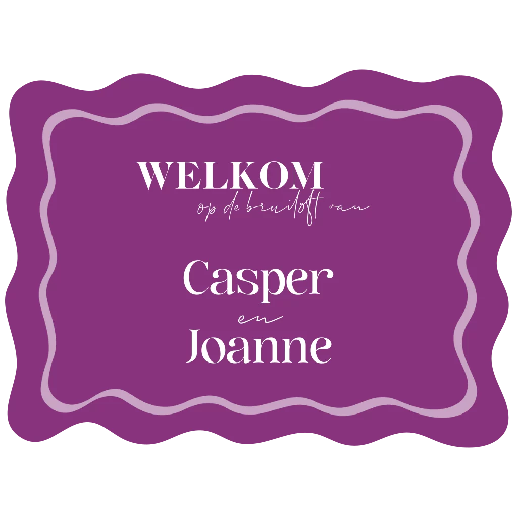 Een welkomstbord in de stijl van jullie trouwkaart op de bruiloft.