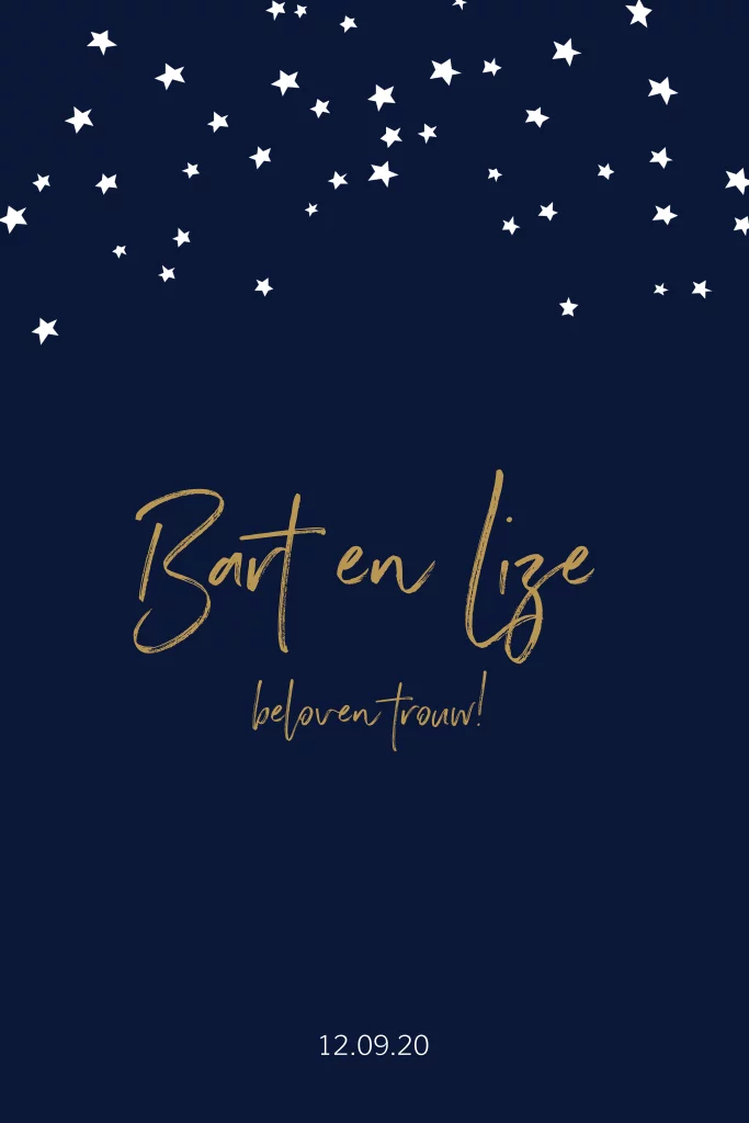 Mooie donkerblauwe trouwkaart met sterretjes