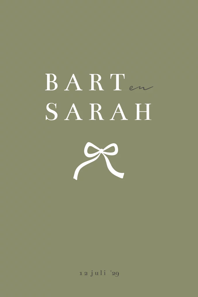 Klassieke trouwkaart met olijfgroen met wit strikje minimalistisch