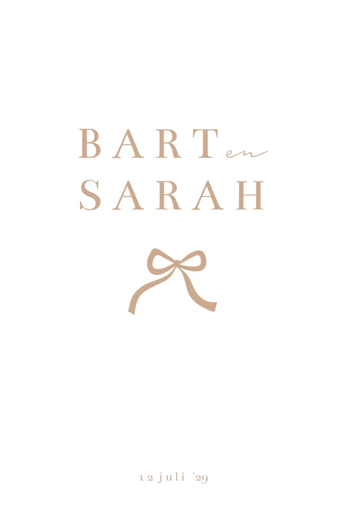 Deze klassieke minimalistische trouwkaart met een roze strik voorop kun je zelf aanpassen naar wens en smaak.
