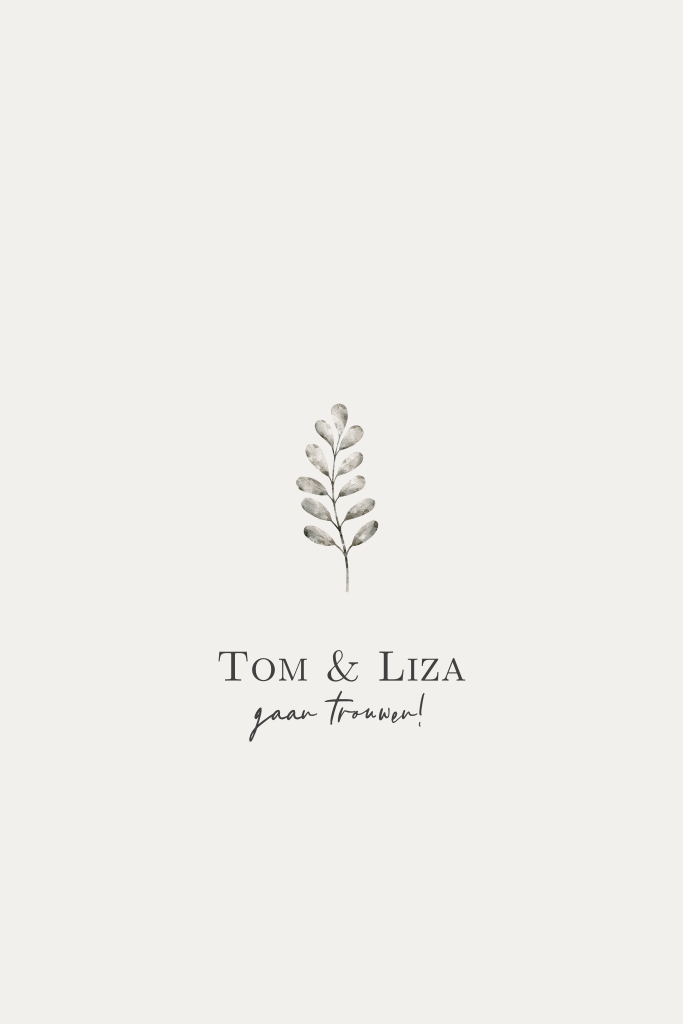 Deze trouwkaart kun je helemaal aanpassen naar wens en smaak. De kaart is minimalistisch met een watercolour takje.
