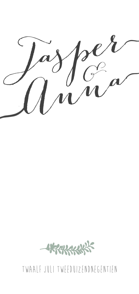 Pas de trouwkaart aan. Speel met lettertypes en Kleuren. Ook de achterkant van de kaart kan eventueel gewoon wit in plaats van groen.
