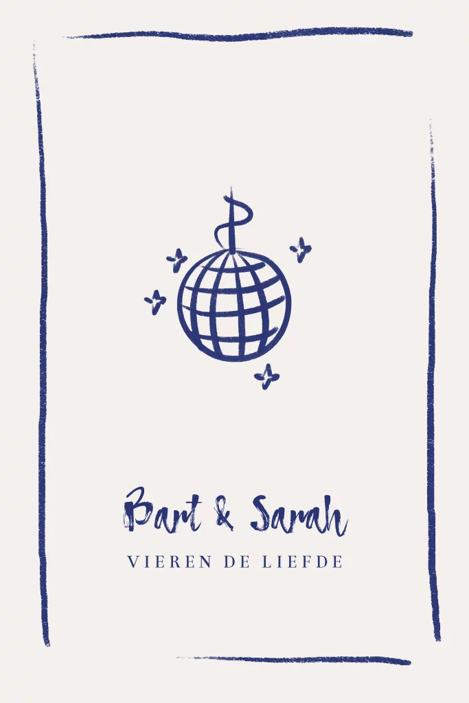 Trouwkaart doodles met discobal en lijnen