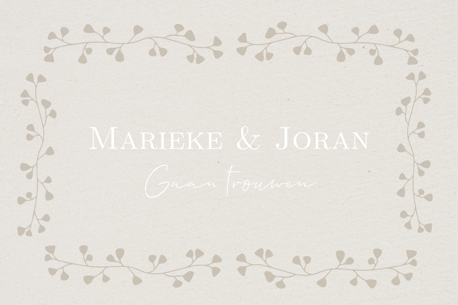 Deze trouwkaart met beige Kraft achtergrond en takjes kun je zelf aanpassen naar wens. Het lettertype en de folie kleur. Ook de kleur van de takjes en de achtergrond.