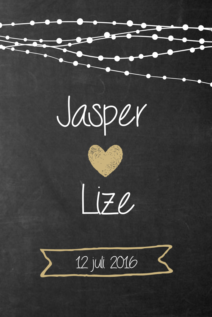 Sfeervol trouwkaartje met lampjes slinger