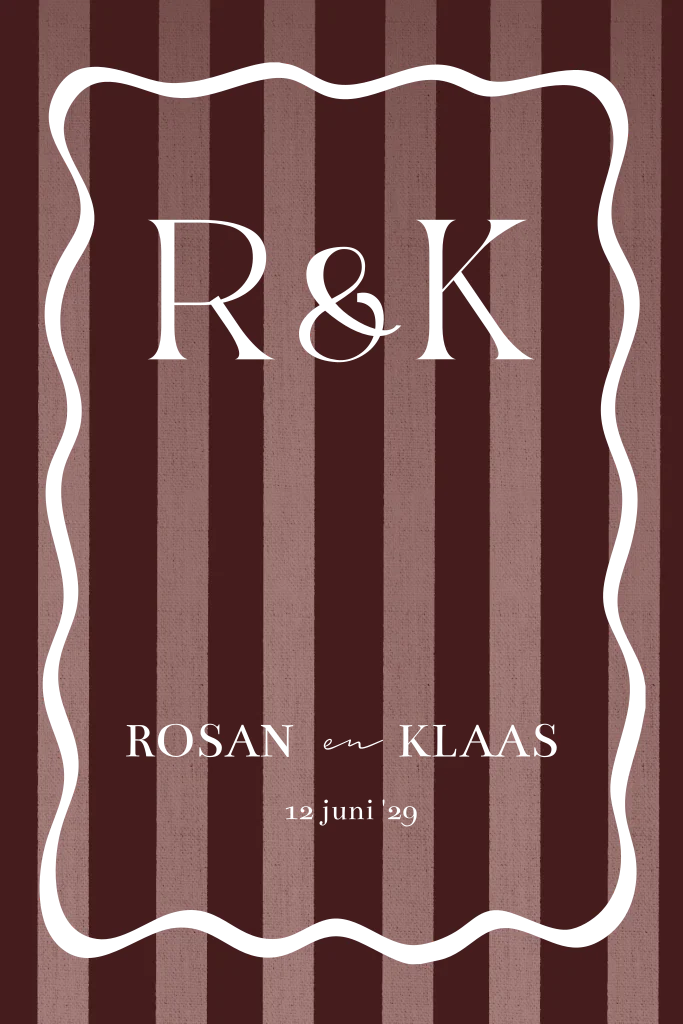 Deze toffe trouwkaart met bordeaux rood paarsige strepen in combinatie met goudfolie en roze kun je zelf aanpassen naar wens.