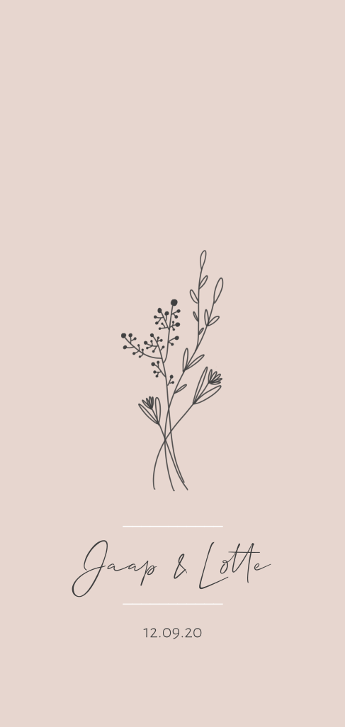 De roze kleur maar ook het boeketje kun je een andere kleur geven. Het lettertype kun je aanpassen naar smaak.