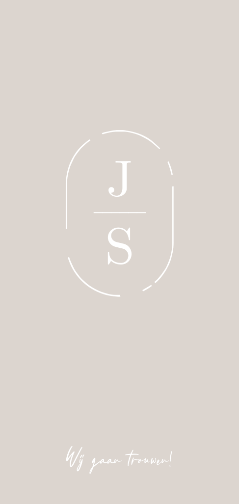 Deze trouwkaart met initialen van de namen in folie kun je zelf aanpassen naar wens. Dit logo kun je de hele dag terug laten komen op de bruiloft en in de huisstijl.