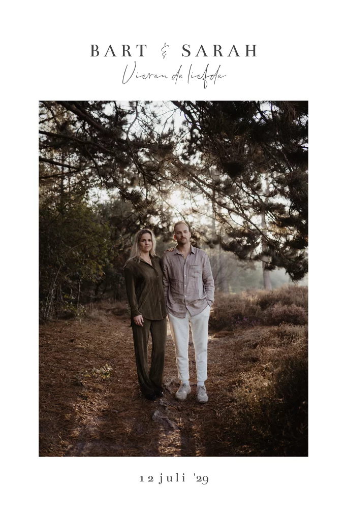 Deze mooie minimalistische trouwkaart met een mooie foto voorop kun je zelf aanpassen naar wens en smaak.