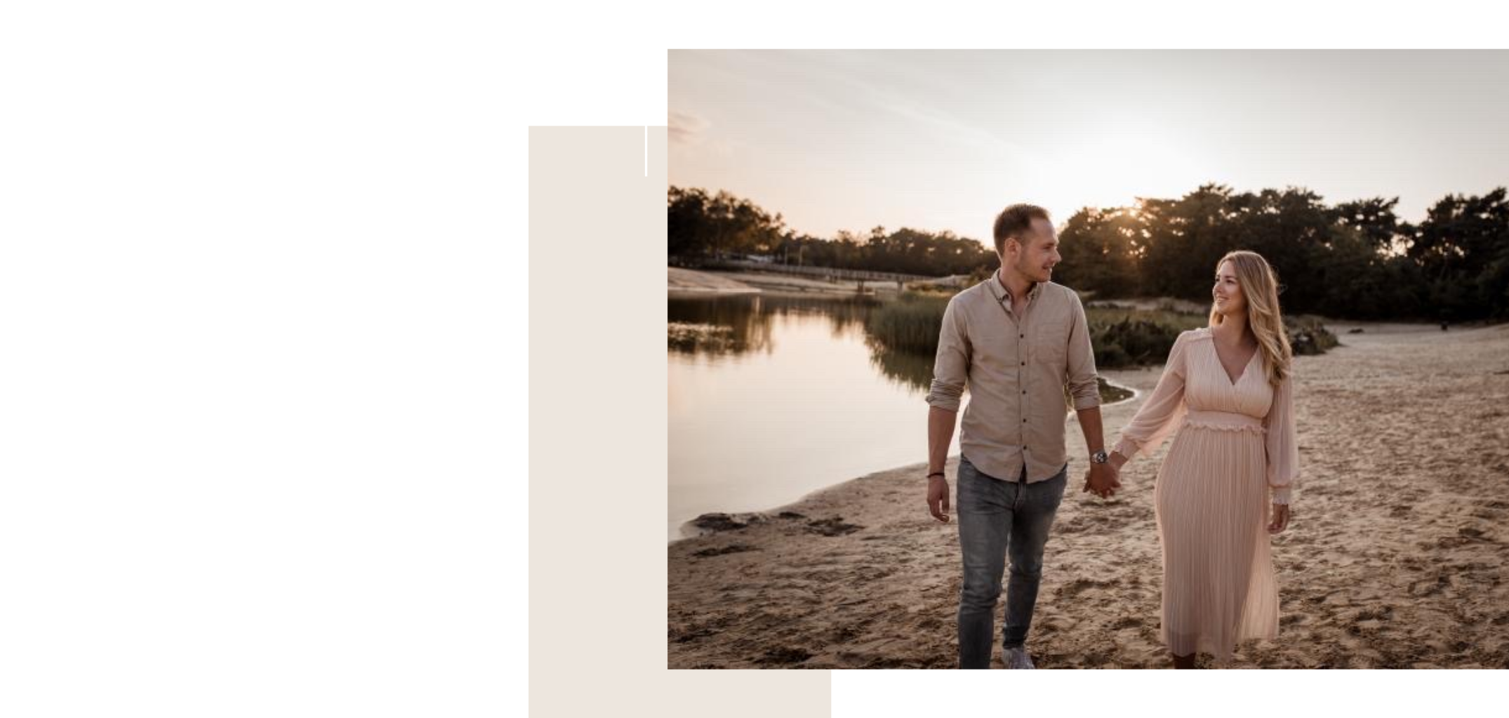 Minimalistische trouwkaart met lijnen in beige tinten en zwarte lakfolie. De foto geeft het een extra persoonlijk tintje.