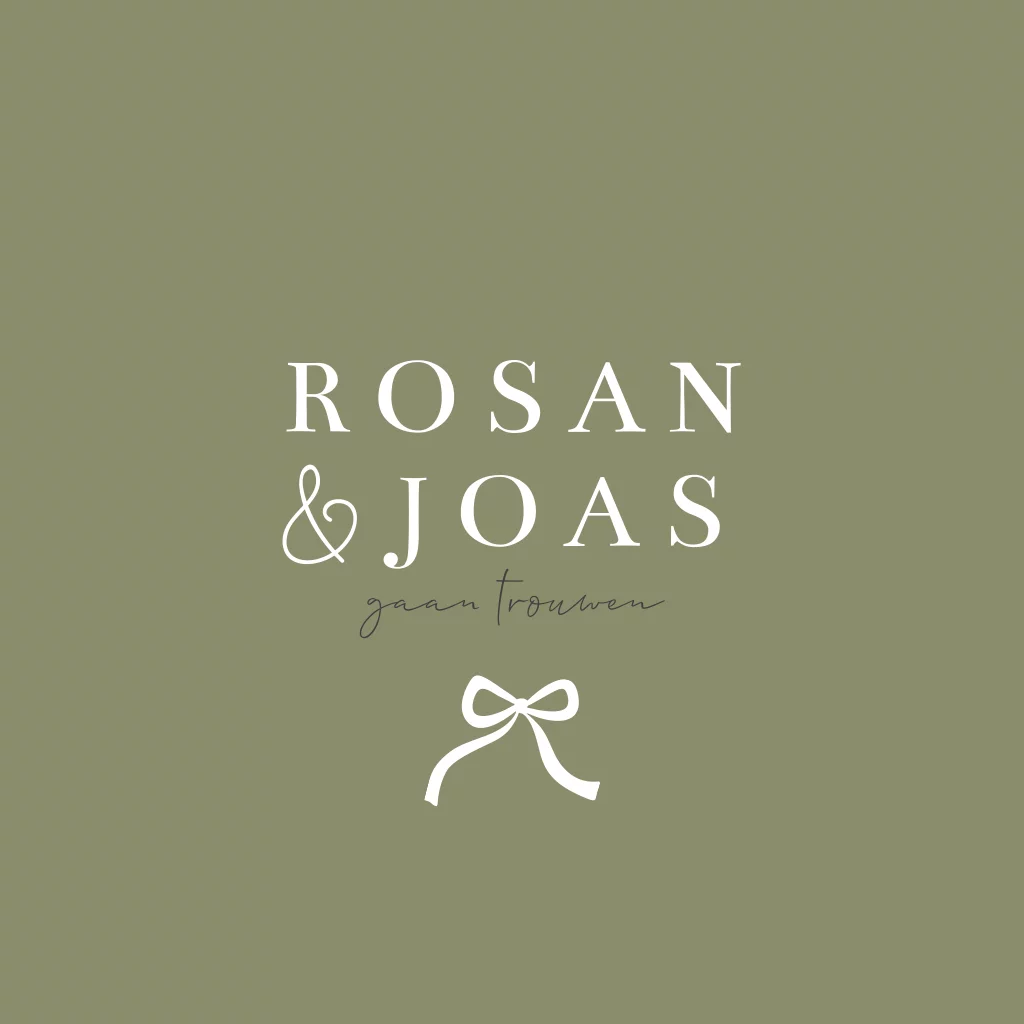 Trouwkaart olijfgroen met wit strikje klassiek minimalistisch